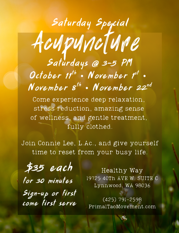 Here is the schedule for my upcoming community acupuncture events (through November)